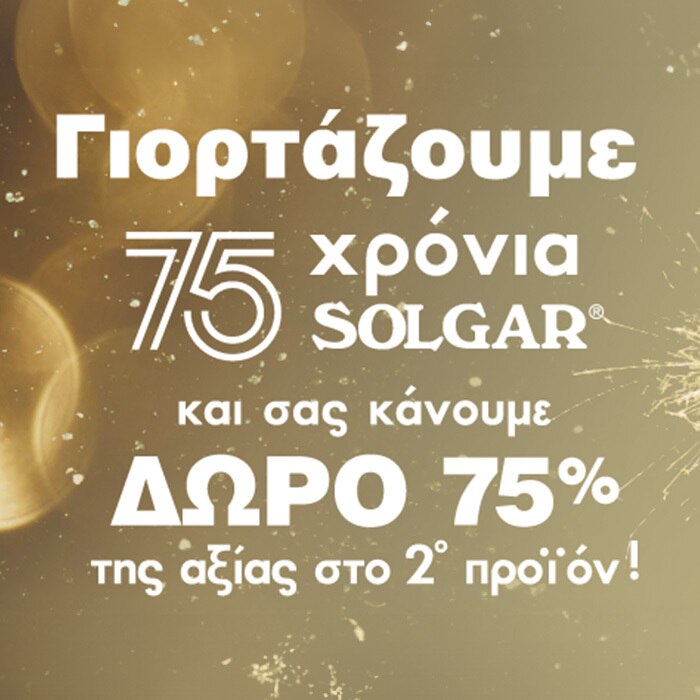 ΣΤΗ SOLGAR® ΓΙΟΡΤΑΖΟΥΜΕ 75 ΧΡΟΝΙΑ ΚΑΙ ΣΑΣ ΚΑΝΟΥΜΕ ΔΩΡΟ ΤΟ 75% ΤΗΣ ΑΞΙΑΣ ΣΤΟ 2ο ΠΡΟΙΟΝ!